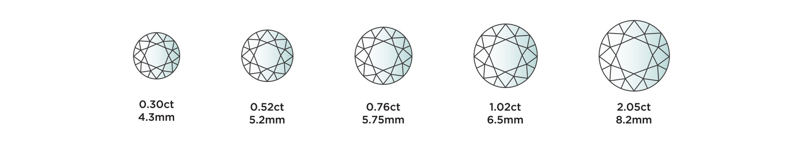 The method of measuring the carat of a diamond is by weight. One carat is 0.2 grams and can be further divided into 100 points which is used to determine the lower carat stones. For instance, a stone with 25 points is 0.25 carats. For a more visual indication of what this means, is the smaller the stone the lower in carat weight and the larger the stone, the higher the carat and price.