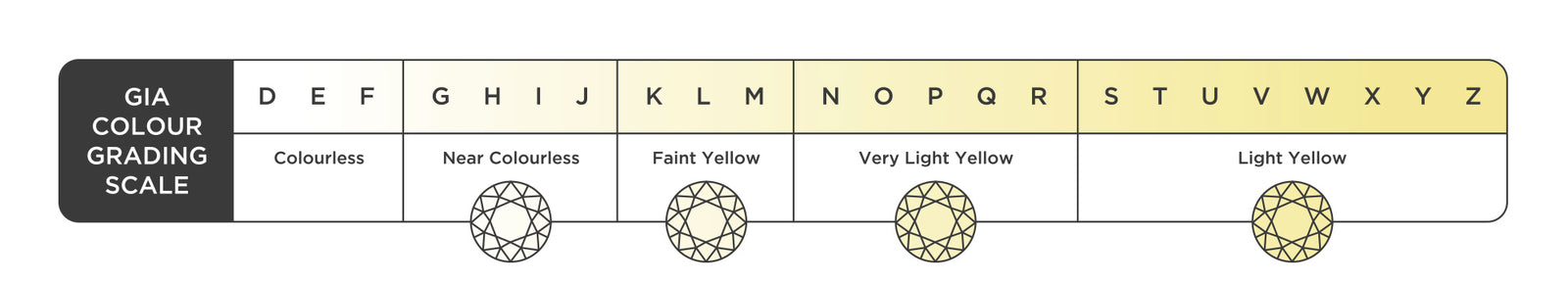 Diamonds come in every colour, however, coloured stones are less desired as it diminishes the light's ability to dazzle as it does in colourless diamonds despite the cut. Unless, they are ‘Fancies’ which are rare diamond so unusually strong colour. The grade used to determine the desirability of colour in a diamond is measured from D (colourless) to Z (coloured yellow). The clear diamonds are the most prized and are the most expensive. It is recommended while purchasing a diamond you do not choose one less than grade H.